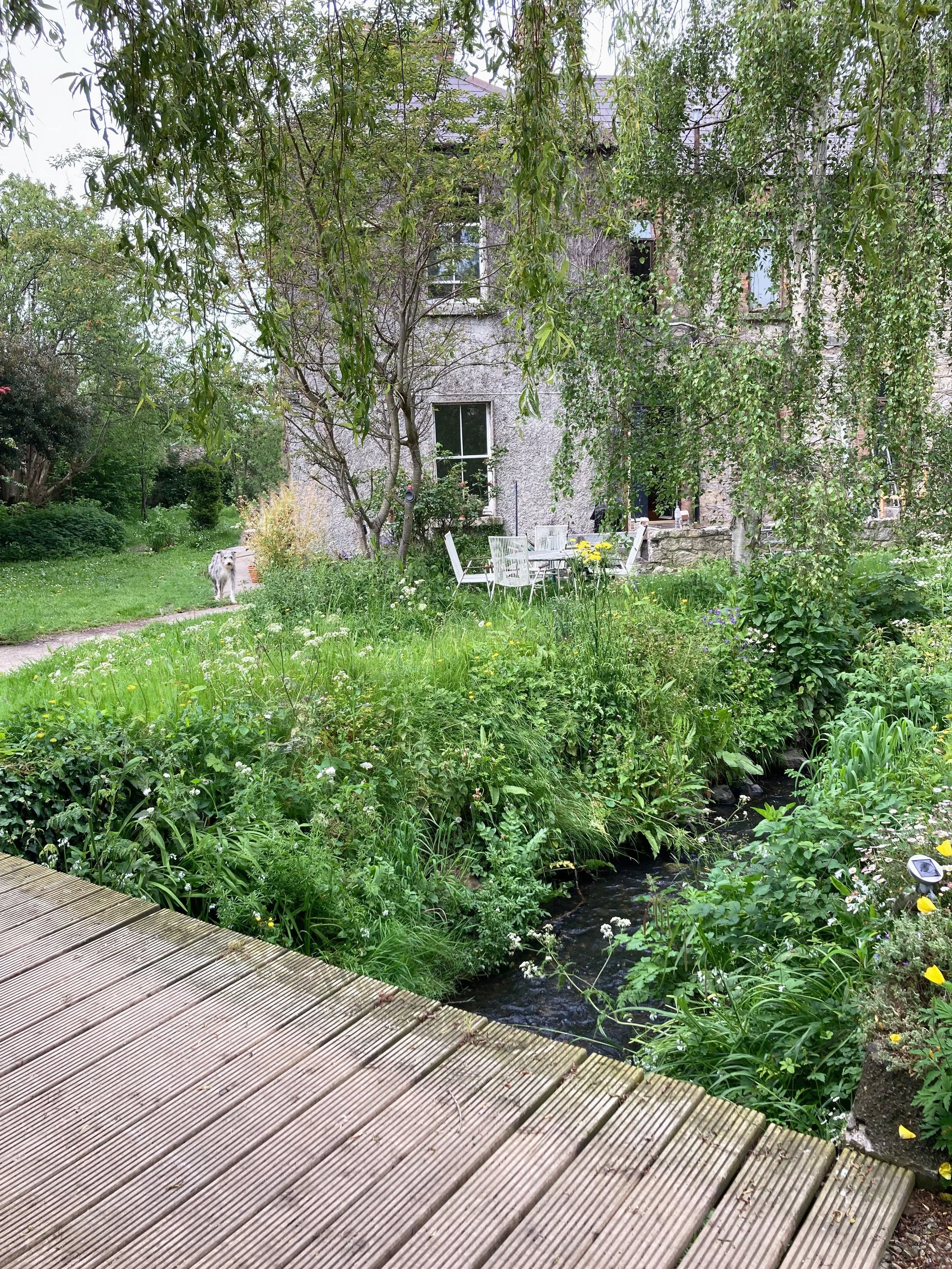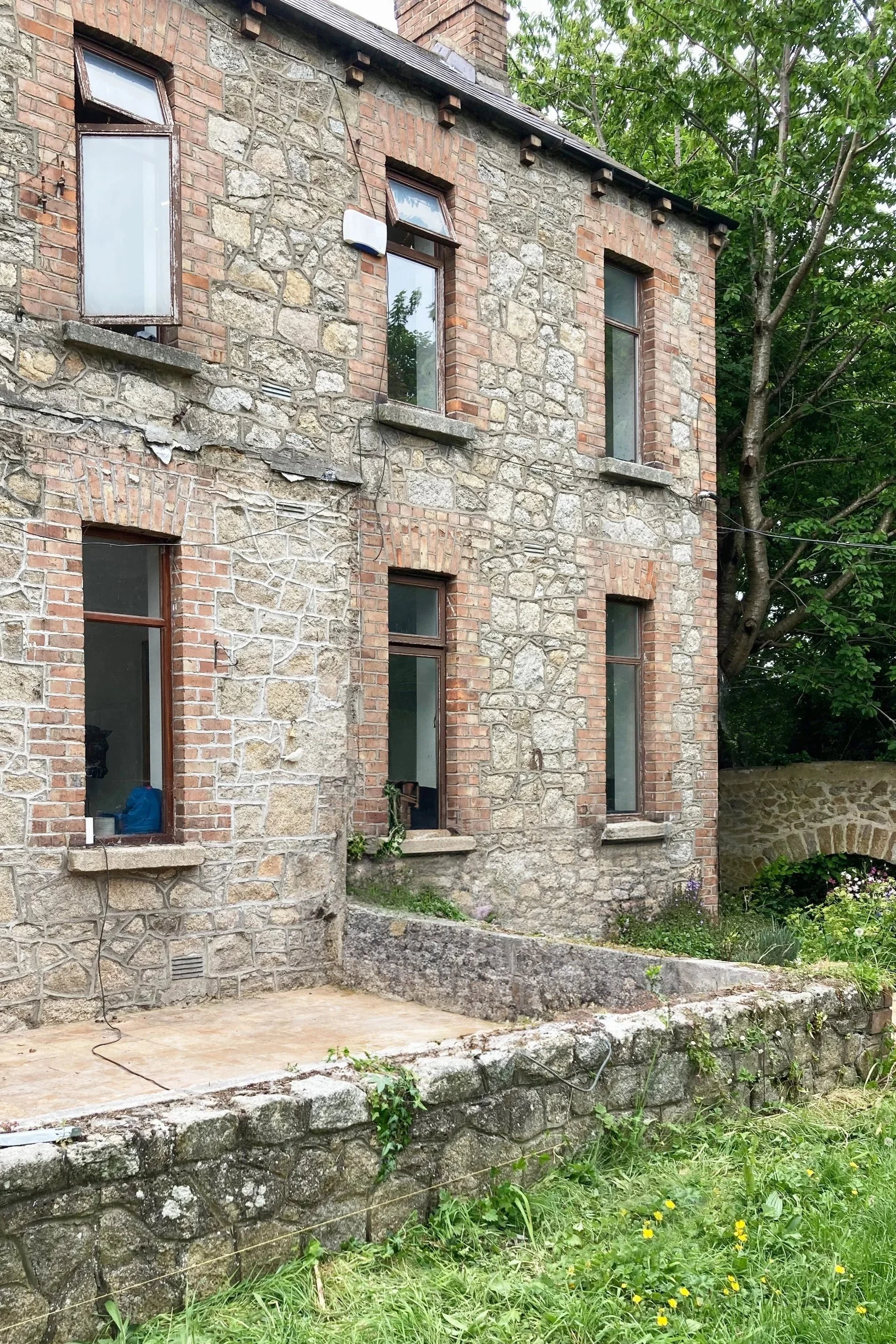 This detached 1860s stone & brick house is nestled discreetly in the heart of a residential area in Blackrock Co. Dublin. The site is accessed through a narrow laneway, the house reveals itself as you cross the footbridge over the Carysfort River.
