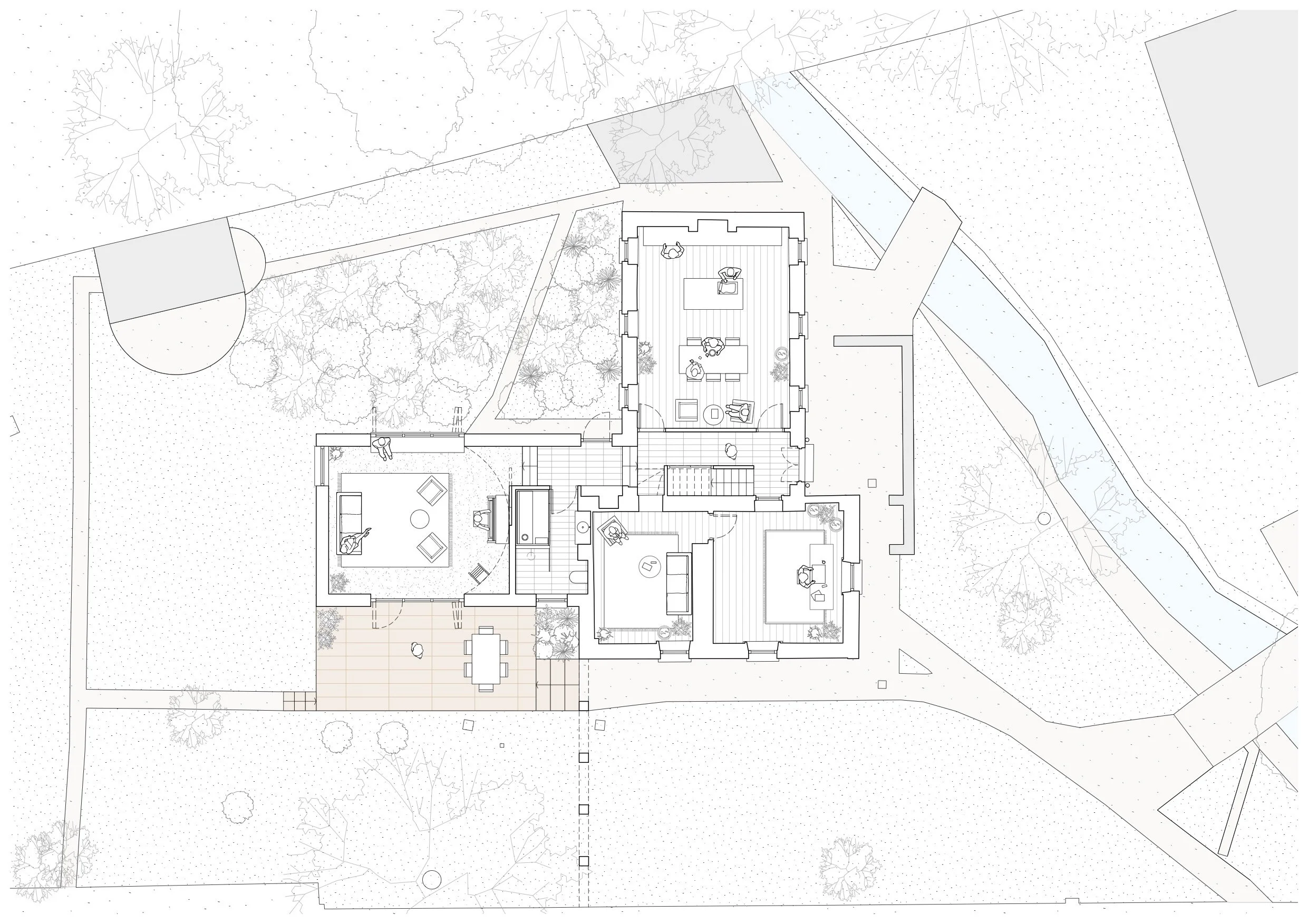The ground floor layout of existing house was problematic, interventions over the years had resulted in a disjointed and disconnected series of rooms.