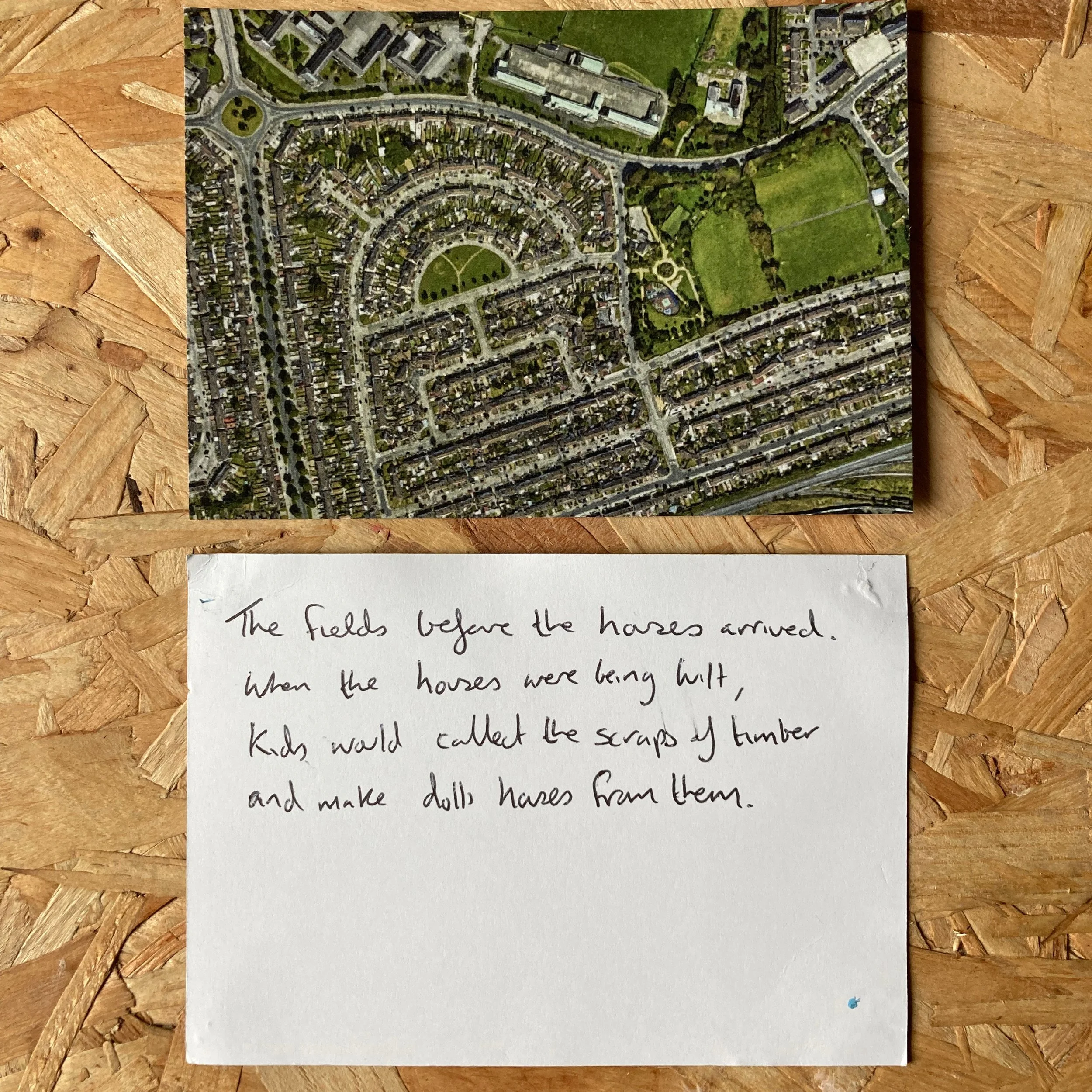 We held discussions with each community around a map of their area. Each map was divided into 9 postcards, we asked each participant to choose their favourite area to write a story about.
